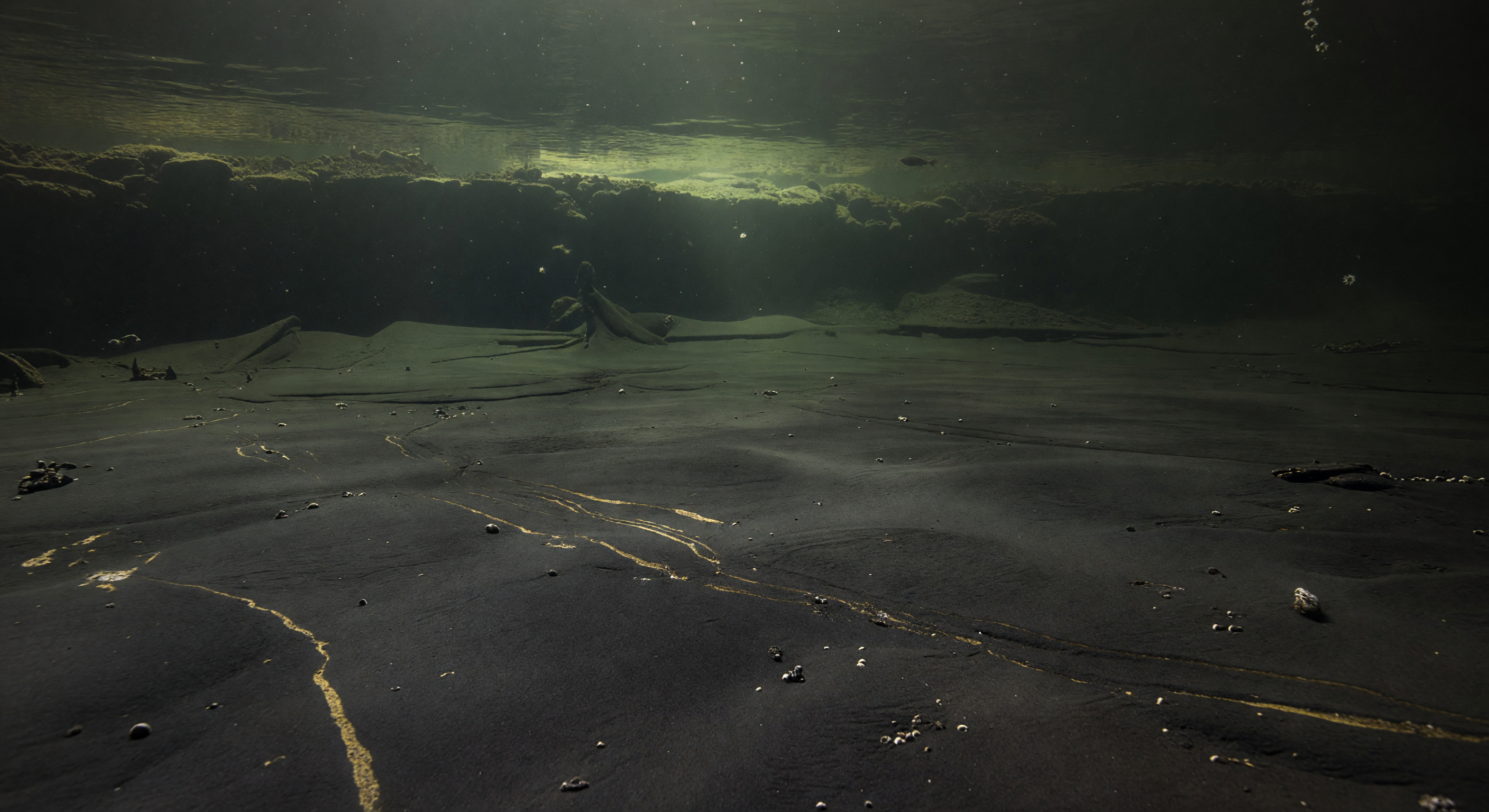 في هذا الحوض البحري العميق من أواخر العصر الديفوني، قبل نحو 372–359 مليون سنة، تتلاشى أشعة الشمس تحت الرف القاري إلى مياه زيتونية سوداء راكدة فوق طين عضوي ناعم سيتحوّل لاحقًا إلى الطفل الأسود. يطفو عدد قليل جدًا من الشعاعيات الدقيقة Radiolaria، بهياكلها السيليسية الشوكية، فوق قاع شبه ميت تغطيه رقائق طينية غير مضطربة وعروق لامعة من البيريت، وهي دلائل واضحة على نقص الأكسجين الشديد. تمثل هذه البيئة واحدة من أزمات الديفوني المتأخر، حين أسهمت البحار الدافئة المتطبقة وتدفّق المغذيات من اليابسة المشجّرة حديثًا في خنق أجزاء واسعة من المحيط، تاركةً سجلًا رسوبيًا قاتمًا يوثق انهيارًا بيئيًا في أعماق الزمن.