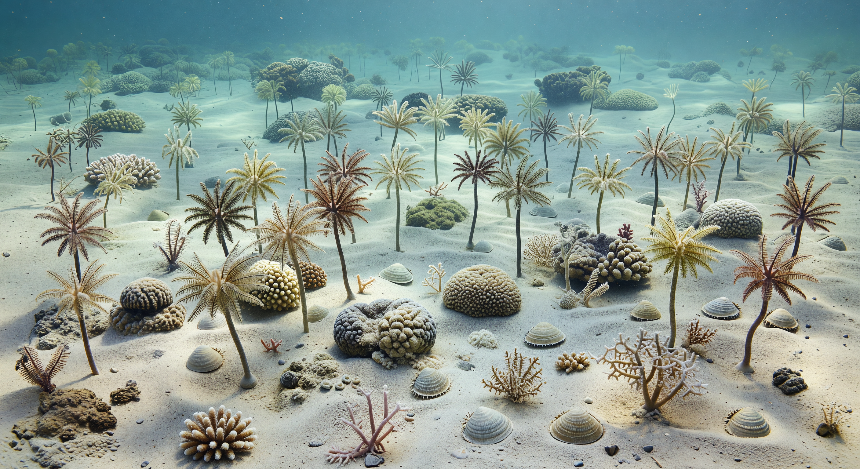 - Español: Praderas de crinoideos y corales en plataforma marina Laurussia
