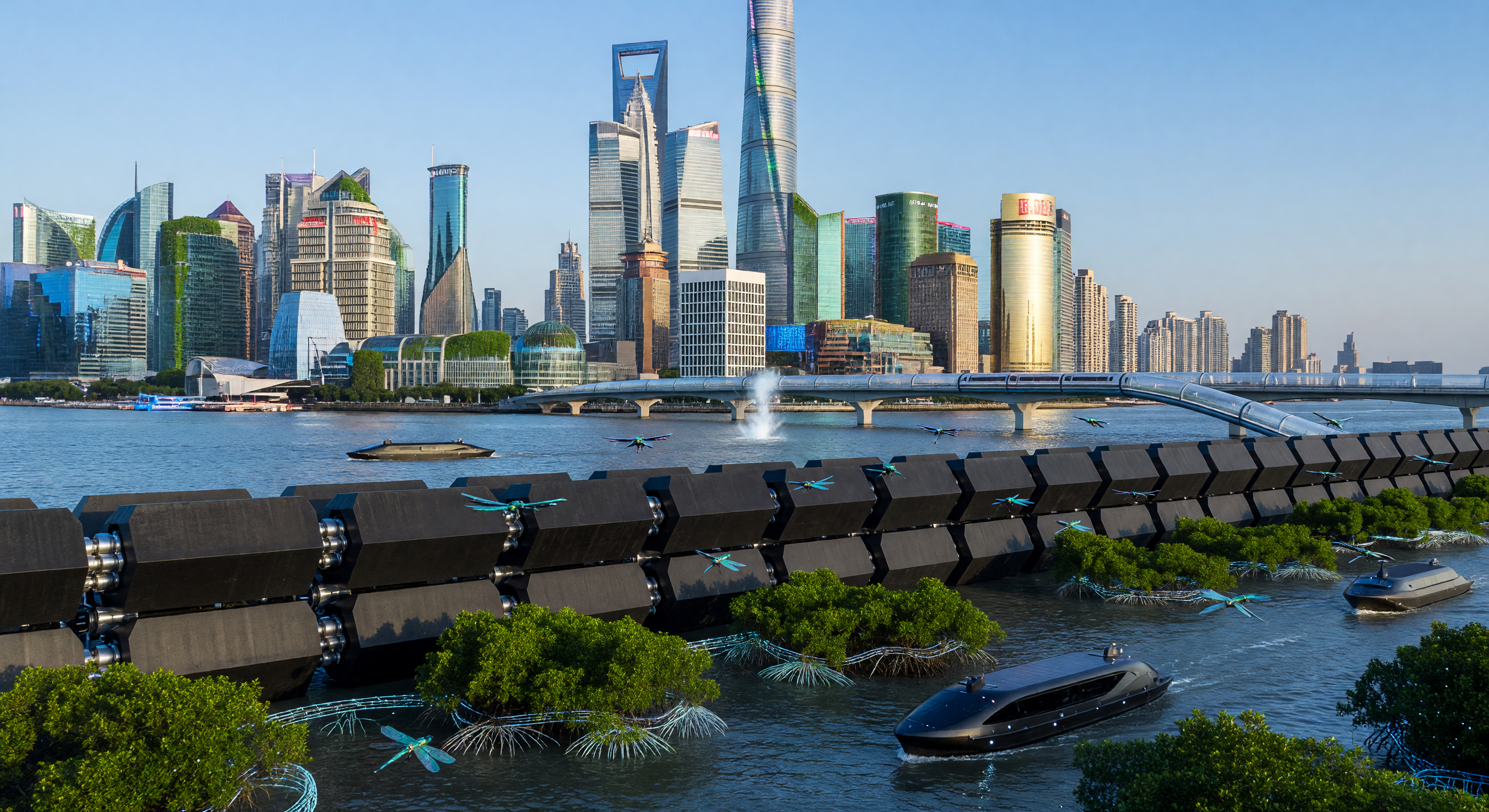 - Italiano: Barriera Marittima Cinetica in Grafene nella Shanghai del Limite