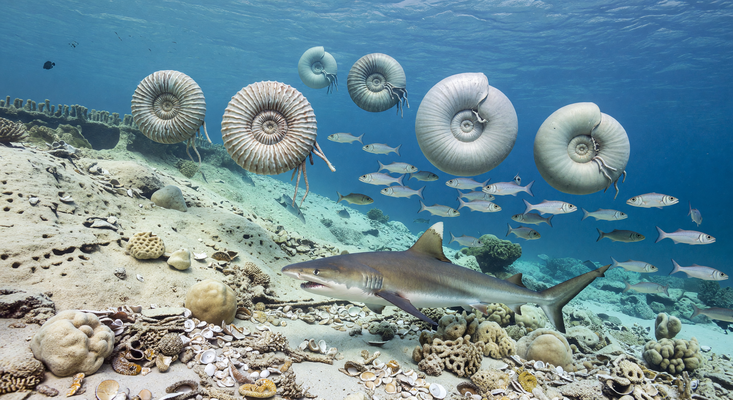 - 日本語: 後期白亜紀赤道域の炭酸塩棚縁を漂うアンモナイト