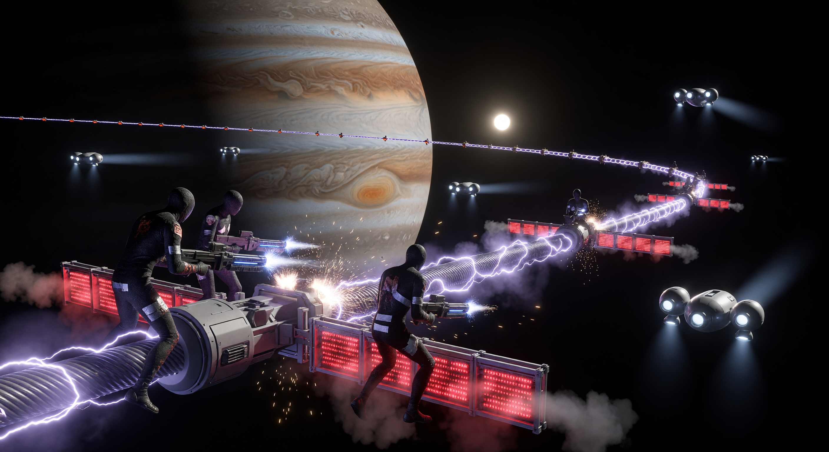 - Español: Drones de seguridad defendiendo anclaje magnetosférico de Júpiter